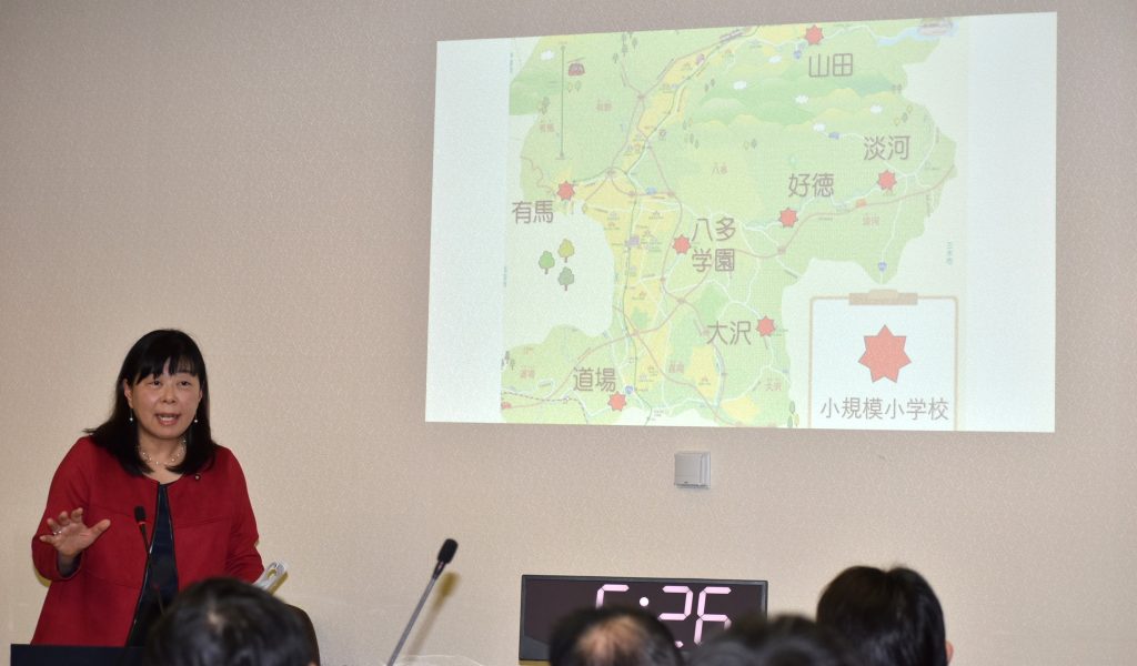 答弁)適正な通学距離が大事。校区が広大な場合は学校同士の統合は適切ではない場合は、小学校と中学校を義務教育学校にしていく 小規模特認校、学校間交流など、地域と話し合いながら 引き続きていねいに話し合いを続けていく。
