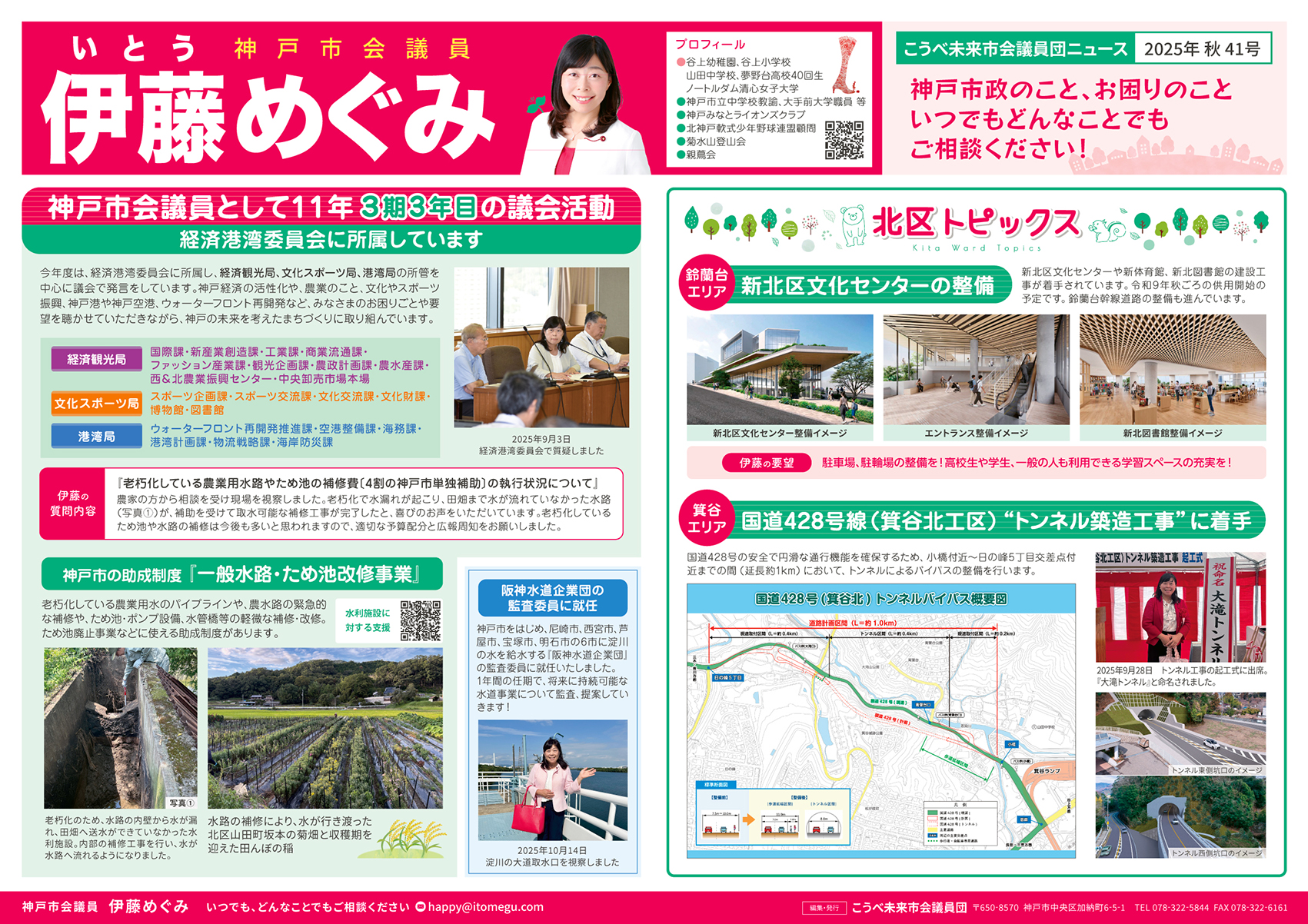 2025年11月7日 / 最終更新日 : 2025年11月7日 伊藤めぐみ 市会ニュース 市会報告 2025年秋41号 shikainews41_omote.pdfダウンロード shikainews41_ura.pdfダウンロード FacebookXBlueskyCopy