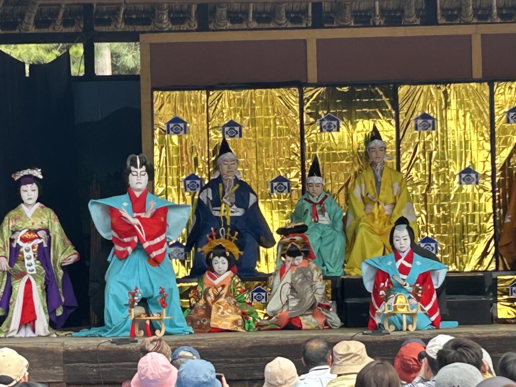 2026年3月29日、いいお天気に恵まれました。観客席は外で、屋根もないところですが、歌舞伎上演の時はいつもお天気に恵まれているのが不思議です。