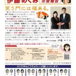 2015年1月8日 / 最終更新日 : 2015年1月8日 伊藤めぐみ 最近おもうこと 2015年新年の誓い 2015年がスタートしました。 私の今年の誓いは、市会報告にも書かせていただきましたが、 ”笑う門には福来る”(笑顔のところに福は来る!!) 「新たな1年のはじまりにあたり、今年も神戸市発展のため […]