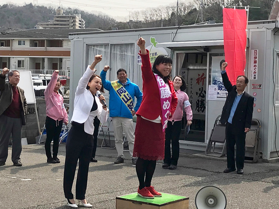 | 神戸の発展と、安心して暮らせる社会の実現を 久元神戸市長と共にめざします。 | 農業委員として農業振興のために全力。 | ともに生きる社会をめざし街頭で訴え。 |